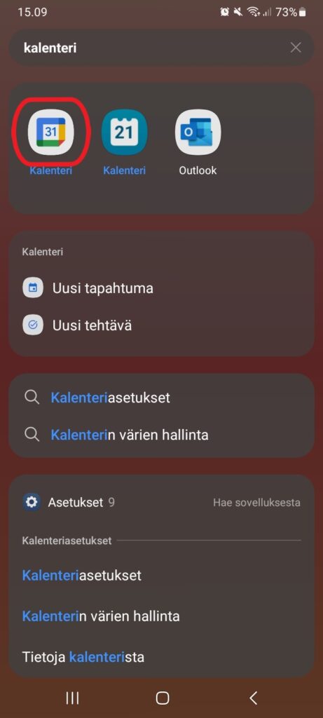 - Google Kalenteri ei yleensä ole valmiiksi asennettuna puhelimeen.
