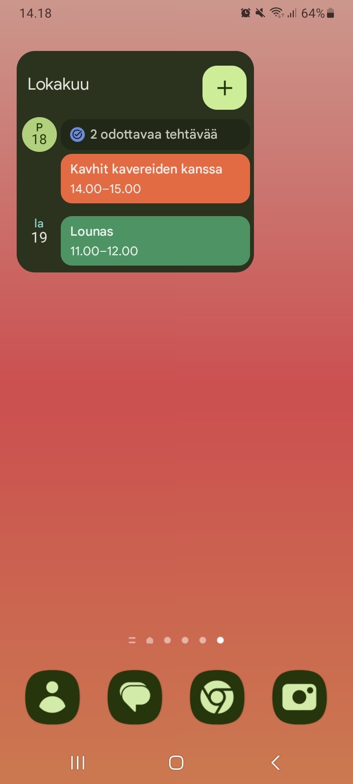 Voit lisätä puhelimesi alkunäytölle joko pienen kalenterin tai kalenterin aikataulun.