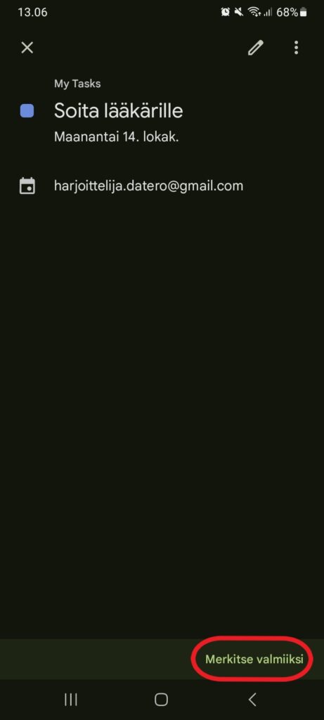 - Kun tehtävä on suoritettu, sen voi merkitä valmiiksi, jolloin sen nimen yli ilmestyy viiva.