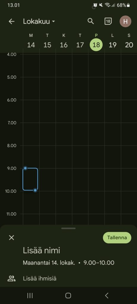 - Valitse se päivä, johon haluat lisätä tapahtuman tai tehtävän.