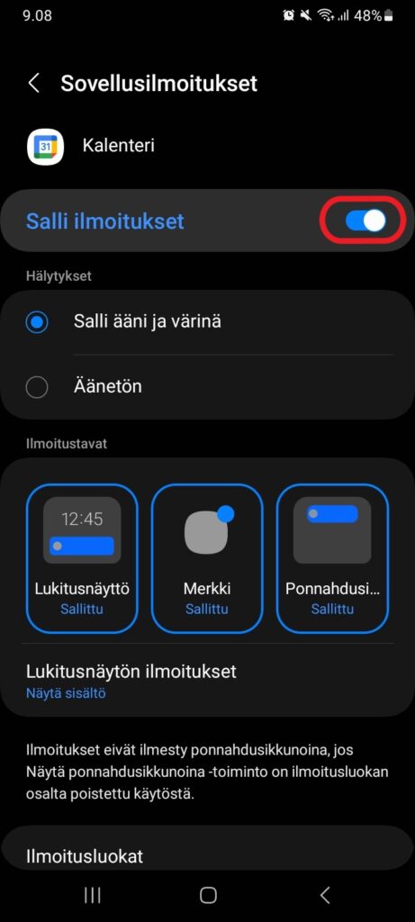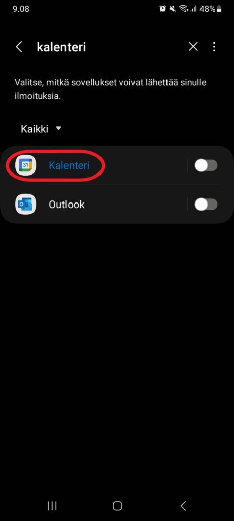 - Mene puhelimesi Asetukset > Ilmoitukset > Sovellusilmoitukset > Kalenteri > Salli ilmoitukset.