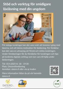 Du får konkreta tips om olika digitala verktyg som underlättar koncentration, läsning och skrivning. Föreläsningen är en praktisk demonstration av hur den digitala miljön kan anpassas för att bättre stöda din tonåring i läxläsning. Du får också direkta råd för hur ni kan börja på därhemma. Det finns lösningar för olika webbläsare och alla lösningar som presenteras är kostnadsfria. Föreläsare är Sonja Haga-Erickson, sakkunnig inom hjälpmedel för inlärning på Datero rf.